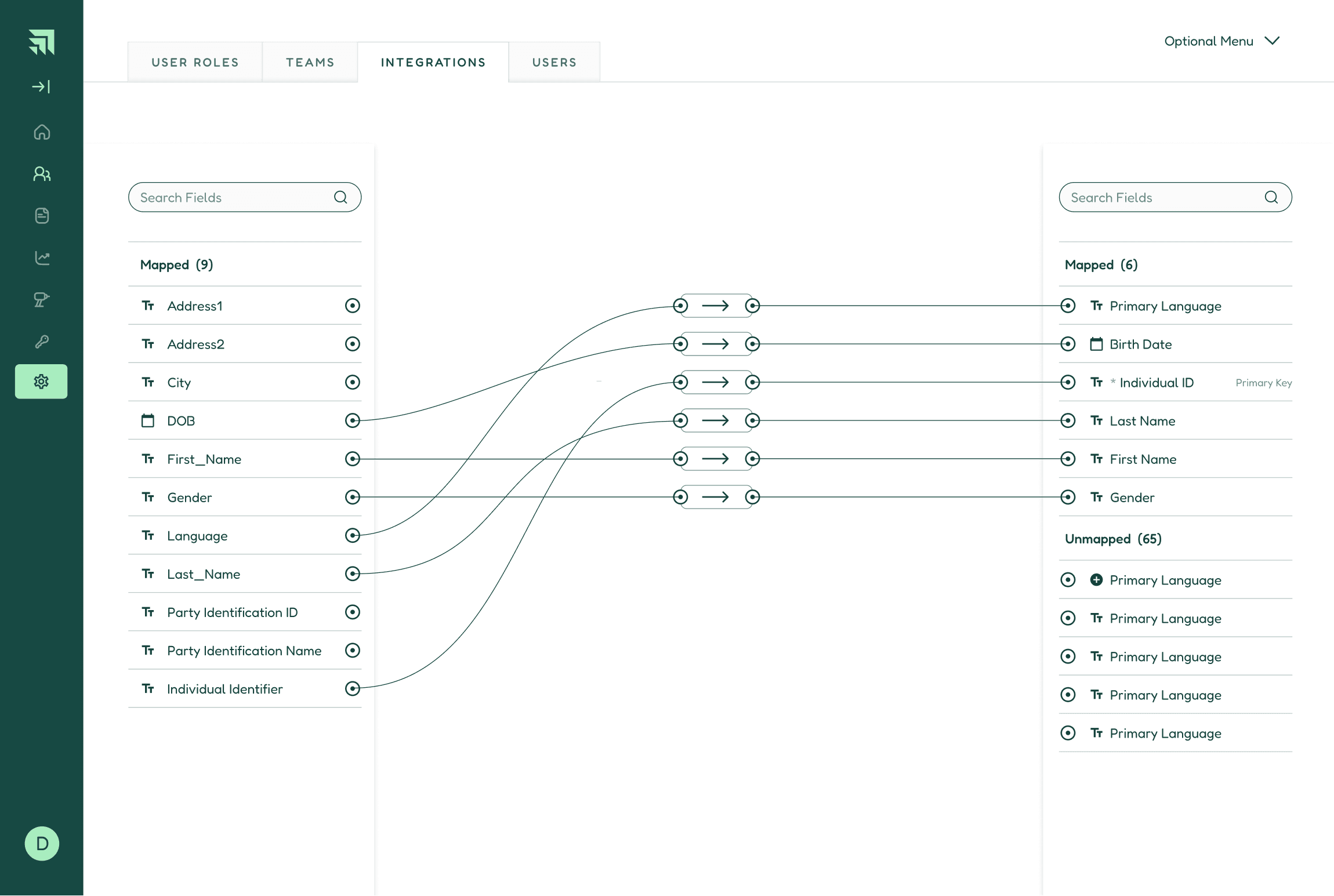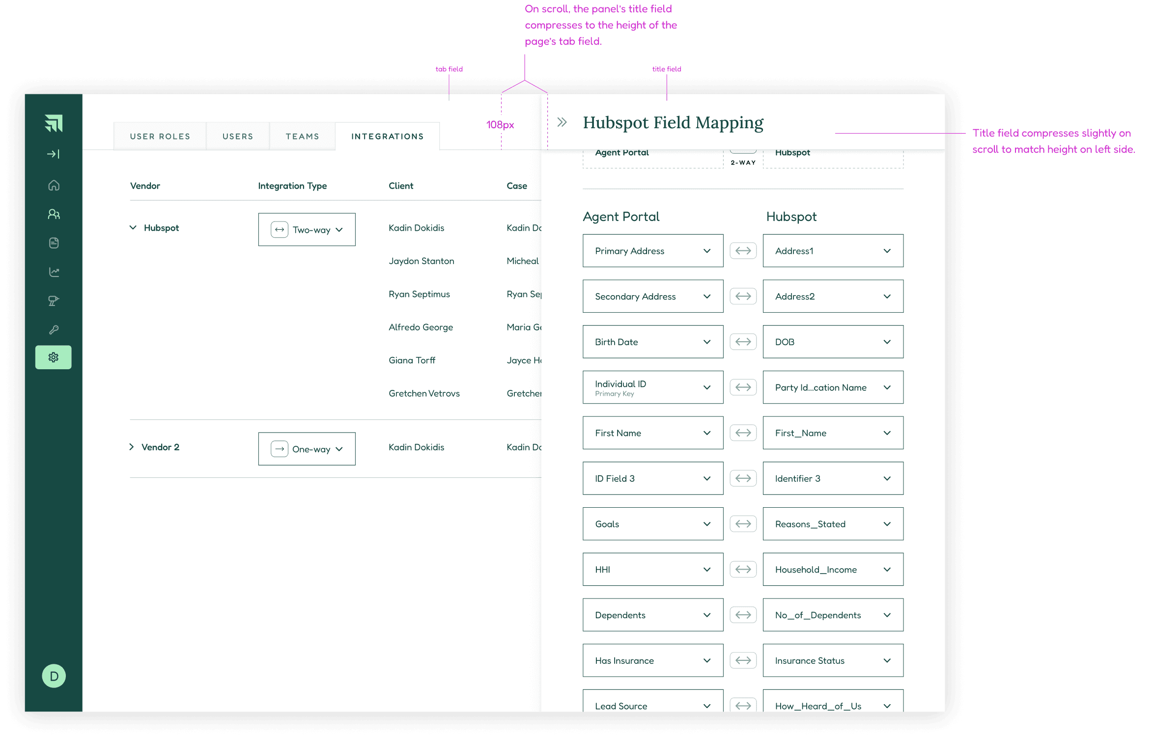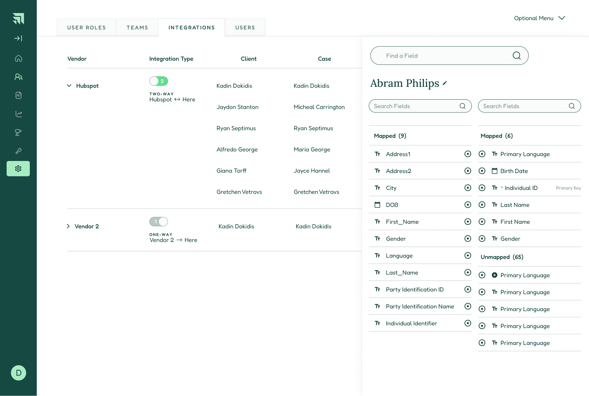 Later in the design process, a new requirement was added: A user must be able to map fields from the Administration Portal into third party tools. We would start with Hubspot, but the architecture also needed to accommodate an arbitrary number of future tools.