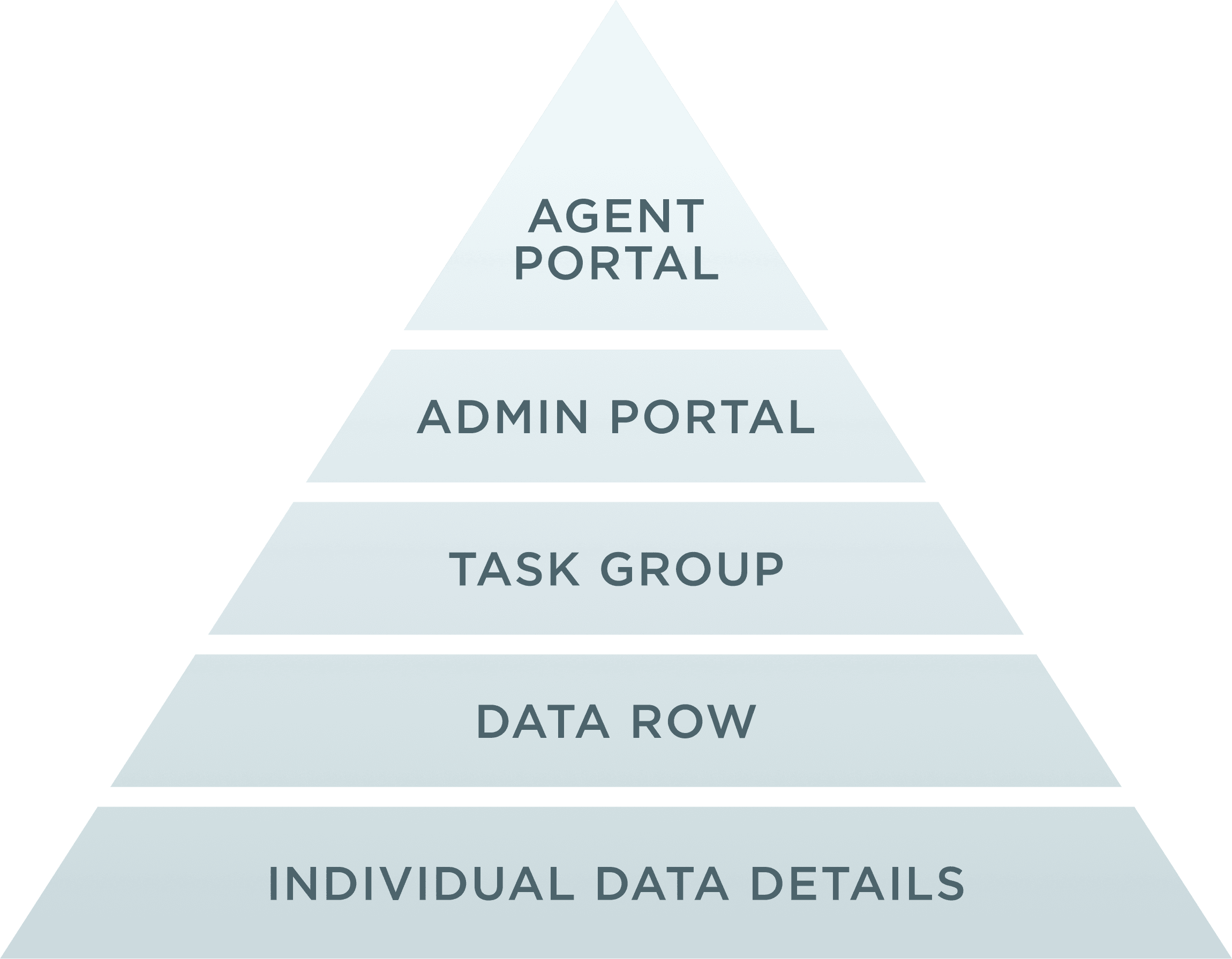 Having built out the visually and cognitively “largest” part of the design (the Individual Data Details layer), I could tackle the next levels upward in the hierarchy. The Data Rows layer lent itself to a straightforward row pattern. Next, to afford administrators the ability to navigate and edit Task Groups, I incorporated tabs on the main panel of the page, adding search functionality to navigate larger data sets.