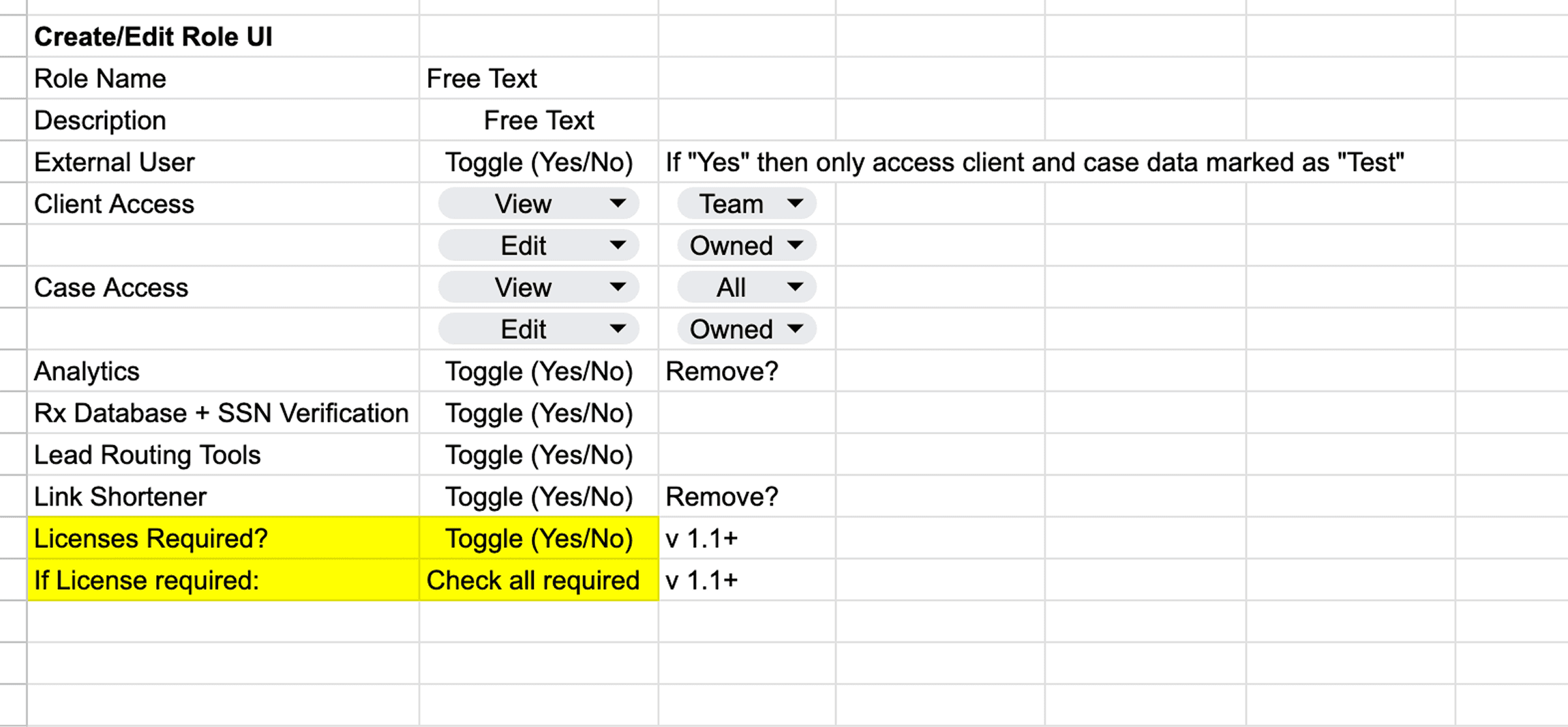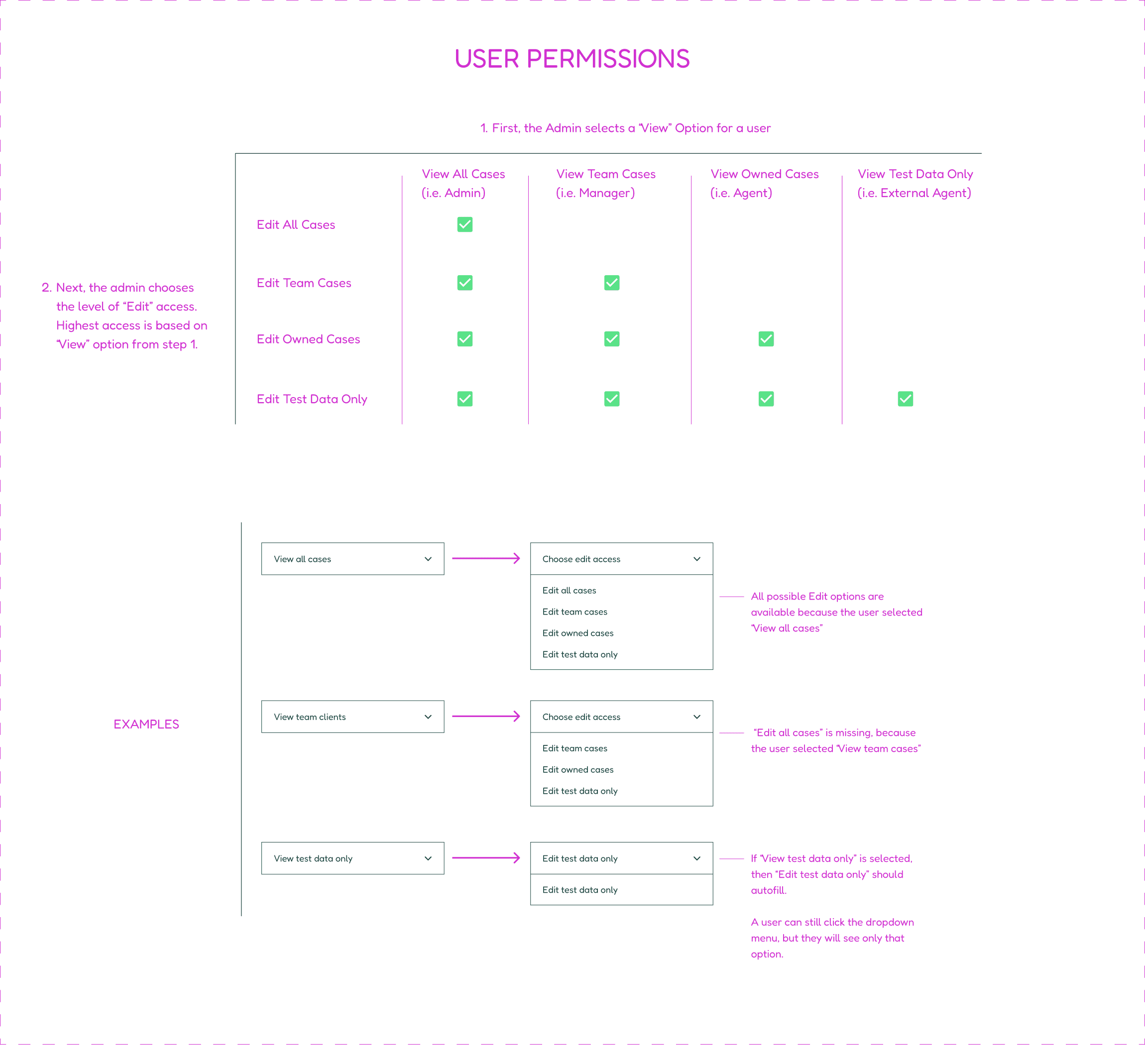 Example: In this project, the rule set around “User Permissions” required a detailed set of instructions.