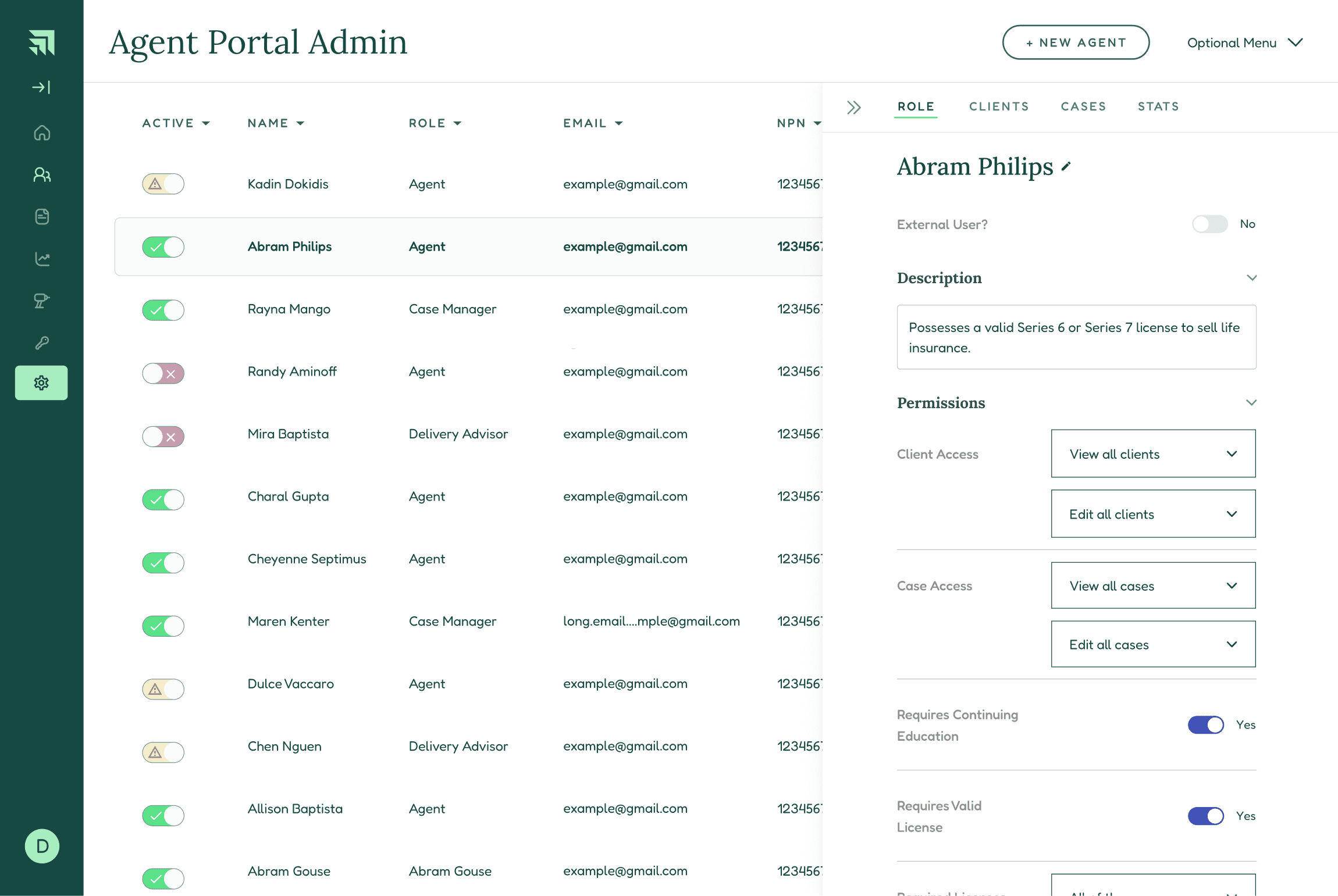 Create and edit Roles (e.g. Business Development Specialist, Sales Agent, Case Manager, etc.)