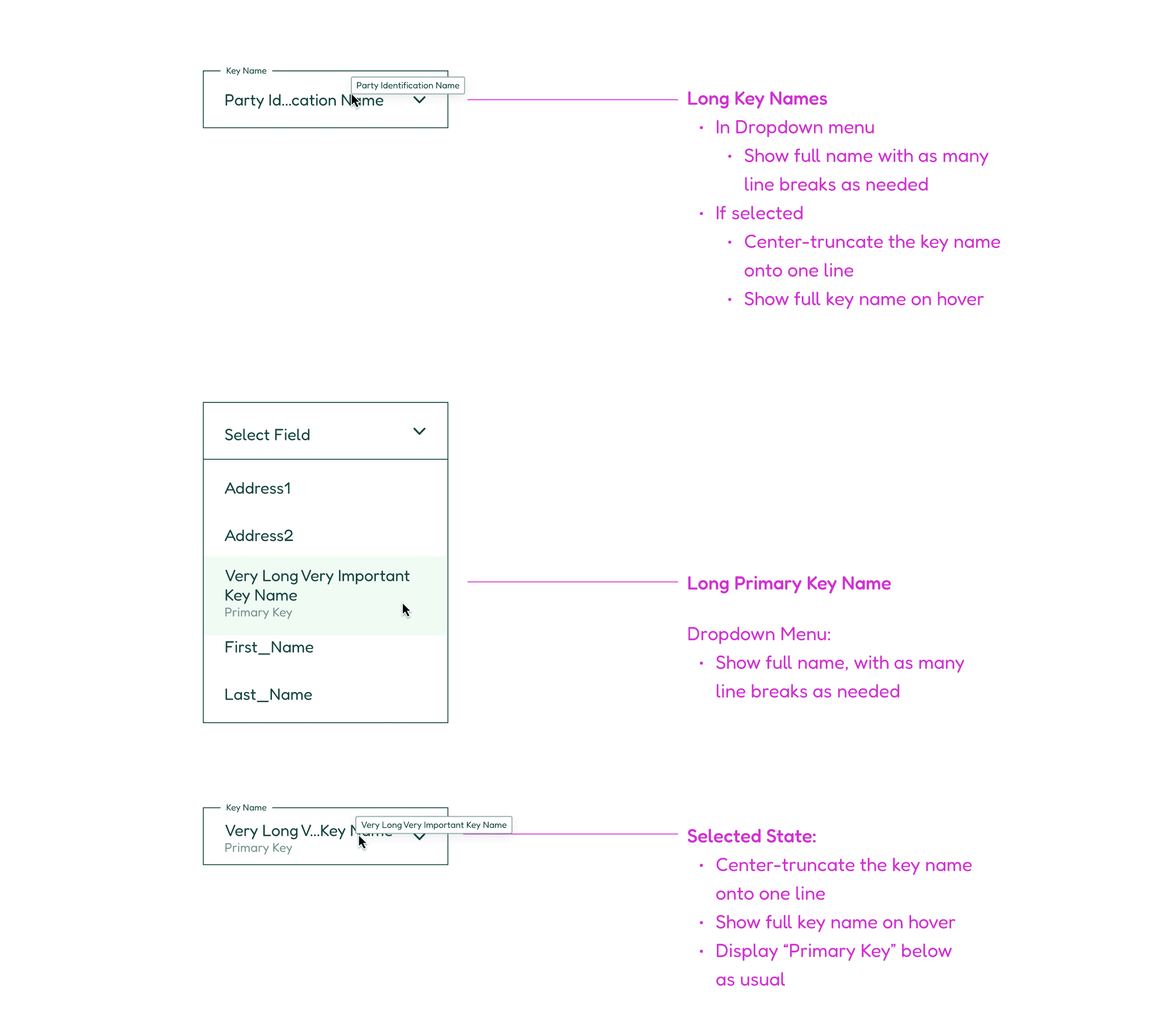 Mapped names must truncate within existing fields, yet be legible regardless of length.