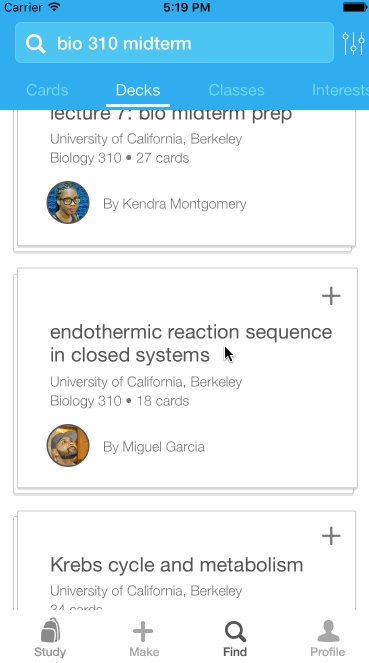 I’m proud of this one. The scope was vast, touching probably 25% of the mobile product. Users will be able to get what they need more easily, and move on with their lives. I established typographic, spacing, and architectural precedents that will become new standards for our product. Those will facilitate high quality designs in the future, allowing StudyBlue to run even faster.